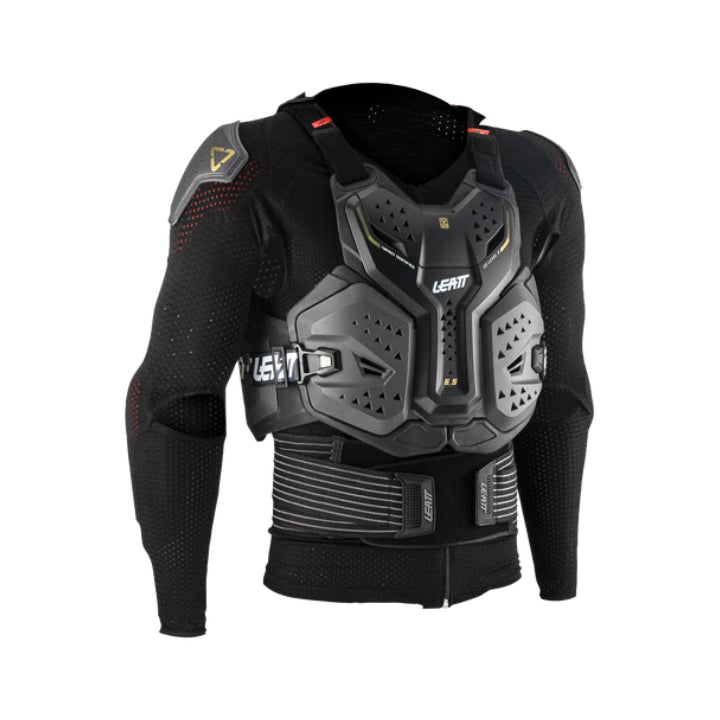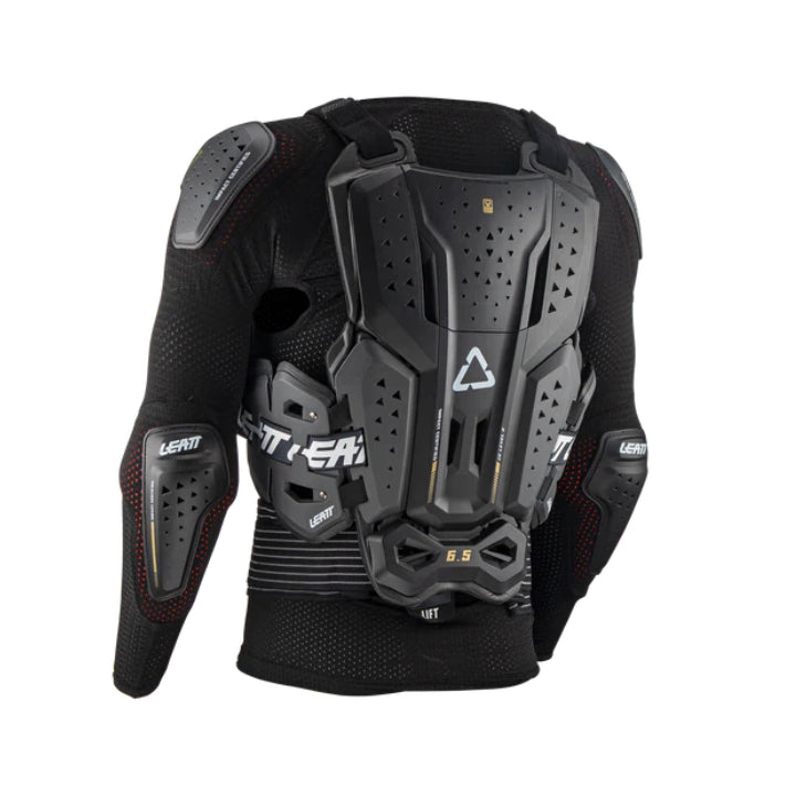 PROTECCIÓN RÍGIDA DE ÚLTIMA GENERACIÓN CON ESPUMA DE IMPACTO El protector corporal rígido 6.5 es un nuevo producto y concepto, viene en 2 piezas, hay un traje de compresión con cremallera con protectores contra impactos integrados en hombros y codos y también un cinturón renal ajustable en altura. Luego, se utiliza en la parte superior un protector rígido completo contra impactos en el pecho y la espalda con certificación CE junto con protección lateral.Este sistema modular no sólo le brindará la mayor protección sino también una gran ventilación y comodidad. Puntuación de protección total Leatt® de 25 puntos Carcasa rígida...