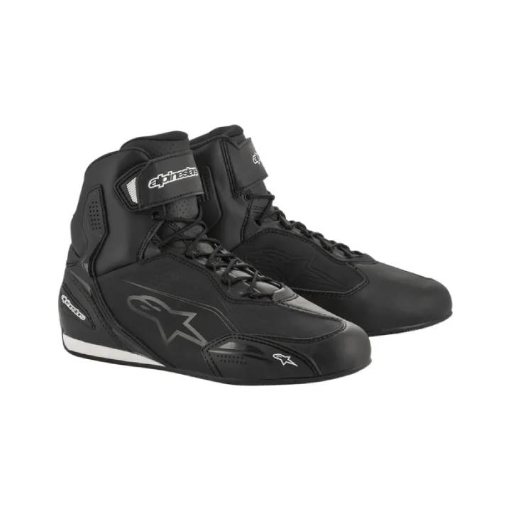 ¿Por qué las Alpinestars Faster-3 Black? Las zapatillas Alpinestars Faster-3 forman parte de la colección de calzado para moto ChromeBurner. ¡Un calzado para moto es imprescindible en tu colección personal! Son, por supuesto, aptas para usar en moto gracias a sus elementos de protección y, en comparación con las botas de moto tradicionales, son mucho más cómodas y se adaptan mejor a tu estilo personal. El calzado para moto es una parte esencial de tu atuendo y es ideal para usar todo el día, incluso cuando no estás en la moto. Las Faster-3 combinan a la perfección estilo, protección y comodidad, y son ideales para motociclistas urbanos. Si estas Faster-3 no son de tu estilo, echa un vistazo a nuestro resto de calzado para moto Alpinestars. () Las zapatillas Alpinestars Faster-3 Construction no son tan avanzadas técnicamente ni rígidas como unas botas de competición o motocross, pero no tienen por qué serlo. Las Faster-3 te permiten conducir tu moto a diario con estilo y tranquilidad, sabiendo que tus pies están protegidos. Este zapato cuenta con la homologación CE para motocicleta gracias a su protección en el tobillo, el talón y la puntera. Además de la protección, el Faster-3 cuenta con ventilación activa, lo que lo hace perfecto para tu colección de verano. La correa de velcro y los cordones garantizan un ajuste seguro. El look del Alpinestars Faster-3: El Faster-3 se puede usar tanto en moto como fuera de ella gracias a su gran comodidad y a que combina a la perfección con tu ropa.