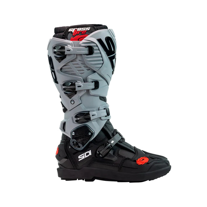 El exclusivo sistema de doble placa de pantorrilla ajustable de Sidi permite al motociclista ajustar el diámetro interior de las botas Crossfire en la pantorrilla. Este sistema, junto con las correas superiores más largas, permite que la bota Crossfire 3 SRS se adapte a los ciclistas con pantorrillas más grandes mucho más fácilmente que incluso las botas Crossfire 2 anteriores. La placa interior está hecha de dos materiales diferentes; uno rígido para sostener la bota y otro resistente al calor para proteger la pierna del motociclista del calor del escape. El nuevo escudo térmico interno está hecho de un material de alto agarre.