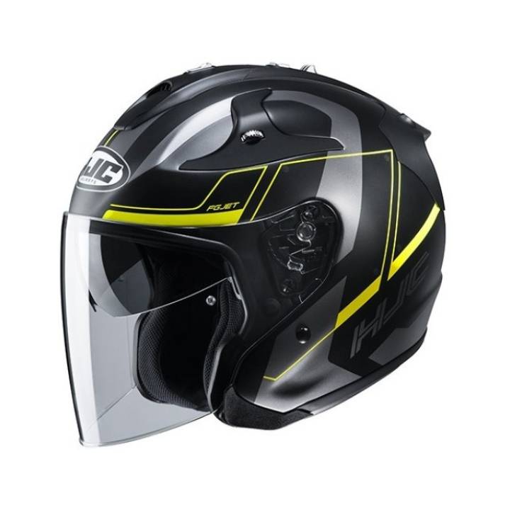 Casco HJC FG-Jet Komina MC-4HSF. Casco jet con amplia pantalla, ideal para el día el día en la ciudad. Cuenta con 3 tamaños de calota para un ajuste perfecto a cada talla.Características principales: Calota exterior fabricada en un compuesto avanzado de matriz de Kevlar y fibra de vidrio; destaca por su ligereza, ajuste y confort gracias al uso de la avanzada tecnología CAD. Visor solar integrado con protección UV. Incorpora mecanismo One-Touch: ajustable en tres posiciones de forma rápida y sencilla. Sistema de cambio rápido de pantalla QuickSlide™: permite desmontar y montar fácilmente la pantalla sin necesidad de...