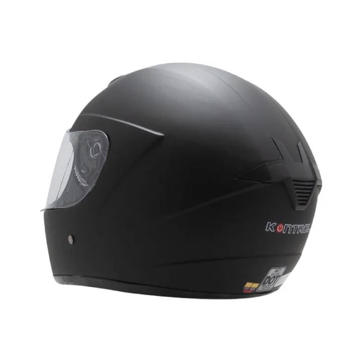 El casco Kontrol 878 integral cubre con las normas requeridas por las entidades de tránsito. Tiene un interior antibacterial muy cómodo que además es removible y lavable. En la parte frontal tiene tres entradas de aire y dos salidas de aire en la parte trasera. Con cierre de correa micrométrico para quitar más fácilmente.