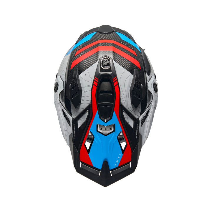 Casco adventure fabricado en fibra de carbono X-Pro, un material altamente resistente a los impactos que combina ligereza y durabilidad para ofrecer el máximo rendimiento en uso Trail y Adventure. Este modelo, sucesor del X.WED 2, integra un diseño funcional y versátil con innovaciones orientadas a la seguridad, como el sistema de liberación rápida F.R.S y las almohadillas X-Foam que reducen el riesgo de lesiones en la clavícula. La calota EPS incorpora un sistema antivibración para mayor estabilidad, mientras que su visor solar ampliado y el sistema de retroceso de pantalla garantizan una visión óptima en todo tipo de condiciones....