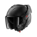 Casco Shark Oxo Dark Shadow Negro Mate. El casco modular OXO destaca por su diseño innovador que permite transiciones rápidas entre los modos integral y jet, con homologación 22-06 y P/J. Fabricado en material LEXAN™ de alta resistencia y EPS multidensidad, garantiza seguridad y durabilidad. El diseño aerodinámico Flip-back optimiza la velocidad, estabilidad y minimiza las turbulencias, mientras que la amplia pantalla y visor solar integrado aseguran una visibilidad óptima. Incluye un sistema de ventilación eficiente para evacuar el calor y ofrece predisposición para el sistema de comunicación SENA for SHARK (no incluido).