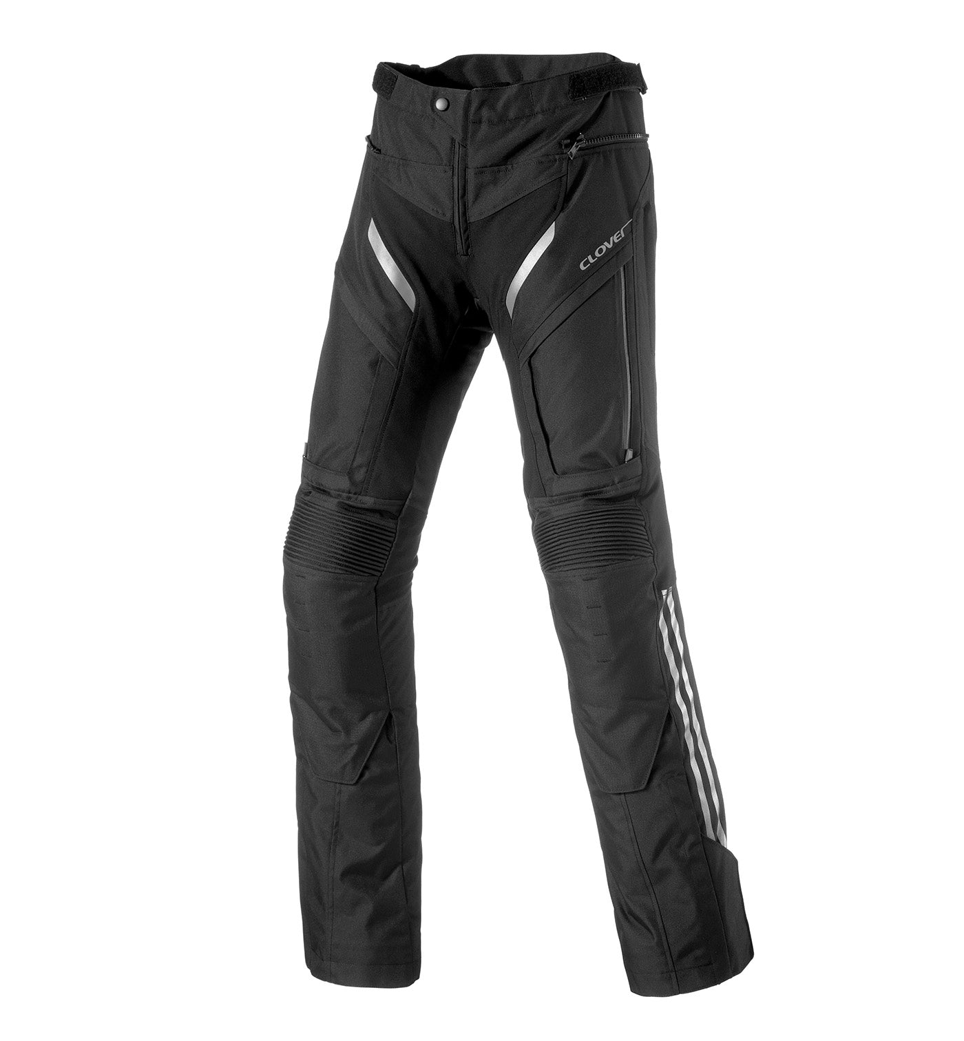 Pantalones Touring, 100% impermeables, versión femenina. Clover Sizes Chart-- - EPI: Equipo de protección personal - Certificación CE: FprEN 17092: 2019 - Certificación de categoría CE: Nivel "A" Tejidos exteriores: "Duratek-4", "Duratek-4 Ripstop". Tratamiento repelente al agua en tejidos exteriores. Membrana impermeable "Aquazone" extraíble Rodilleras "CE" Nivel 2 Aprobación de tipo "CE" EN1621-1: 2012 Protectores de rodilla ajustables y extraíbles Listo para protectores de cadera de nivel 2 "CE", No incluidos, venta por separado. Refuerzos de tejido "Ripstop" en las zonas de impacto Aplicaciones reflectivas laminadas en la parte delantera y trasera Cintura ajustable Parte inferior del pantalón ajustable con...