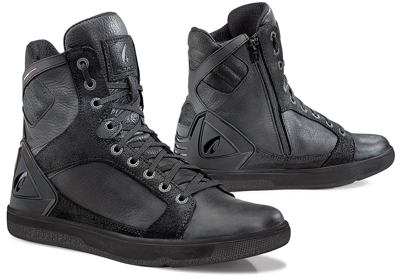 Forma Hyper, las botas para motocicleta màs cómodas que puedes tener. Hechas en cuero 100%, con tecnología Drytex, están hechas para resistir. Cuenta con protecciones aprobadas CE que agregan versatilidad y seguridad en tus desplazamientos de ciudad. Exterior Parte superior en piel Suela de goma de doble densidad Protecciones de tobillo reforzadas. Cuello acolchado para mayor comodidad. Cremallera y cierre de cordones con ojaletes reforzados. Inserto reflectivo trasero y lateral. Interior Forro tubular personalizado Forma Drytex (impermeable y transpirable) Protecciones plásticas moldeadas en TPU para tobillos. Relleno de polímero suave con memory foam Entresuela PP Mid Dual Flex con...