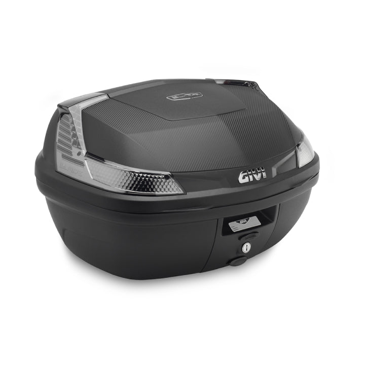 Baúl Givi MONOLOCK® de 47 L en color negro con catadióptricos ahumado.