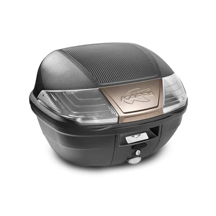 Baúl negro 40 Lts, tapa con textura carbono, embellecedor central en color titanio mate y catadióptricos ahumados. Incluye parrilla K628 y kit de fijación universal.Baúl negro 40 Lts, tapa con textura carbono, embellecedor central en color titanio mate y catadióptricos ahumados.Incluye parrilla y kit fijacion universal.Puede contener un casco modular.