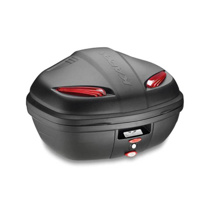 Baúl Tech 47 Lts negro. Incluye parrilla K628 y kit de fijación universal.Baúl 47 Lts negro base, incluye parrilla y kit.• Dotado de guarnición para garantizar la resistencia al agua• Sistema de cierre patentado que consiente de cerrar la tapa con una simple presión• Compatible con el montaje de kit de apertura con mando a distancia Sistema patentado de enganche de maleta que introduce un elemento de gran interés al ya probado sistema Monokey®. La novedad representada por la incorporación de dos nuevos puntos de fijación en la moto de manera que aumenta significativamente la seguridad y la estabilidad...