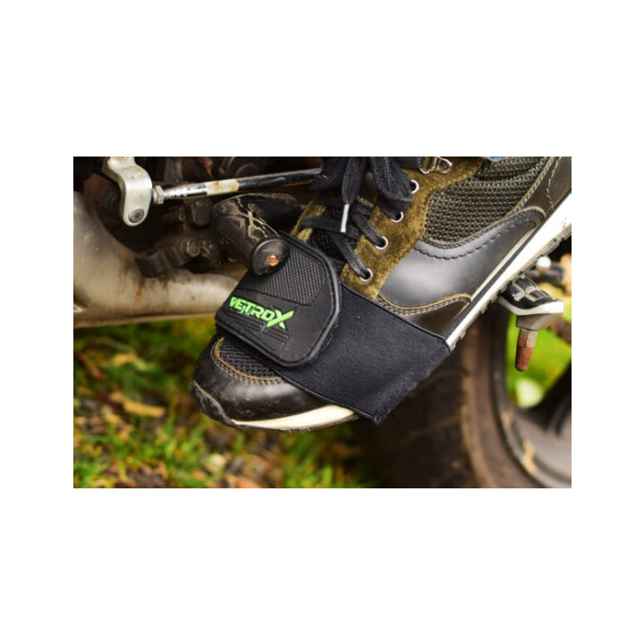 El protector de calzado de Vetrox está especialmente diseñado para proteger tu zapato y evitar que éste se desgaste cuando utilizas los cambios de tu moto. Está fabricado con resorte de 60 mm y apliques en PVC antideslizantes de alta resistencia.